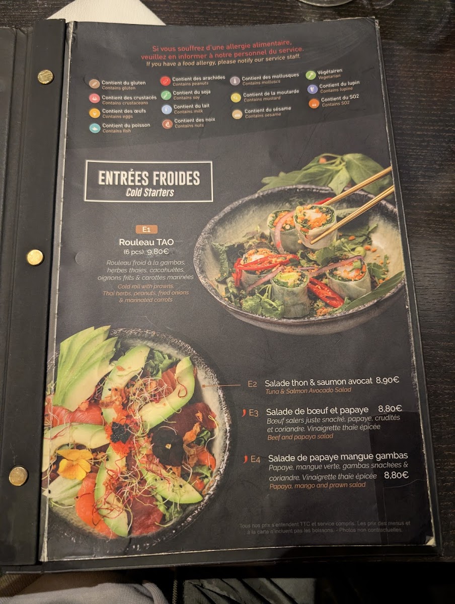Welcome to TAO Asian Fusion, a delightful gem nestled in the heart of Paris at 6 Rue St Denis. This vibrant restaurant presents an enticing menu that harmonizes classic Asian flavors with a modern twist. Culinary enthusiasts will adore standout dishes like the Salade de Papaye Mangue Gambas and the hearty Pad Thai Boeuf Grille, which is beautifully complemented by peanut and coriander. For sushi lovers, the Japanese Menu shines brightly with specialties such as the 8 Rainbow Roll, offering an array of luscious sashimi and sushi. Patrons rave about the generous portions and the vibrant flavors that transport them across continents. TAO Asian Fusion also excels in providing a warm and friendly atmosphere, making it an ideal spot for any dinner gathering. Whether you’re craving comforting ramen or fresh sushi, this place promises to deliver an unforgettable culinary experience.